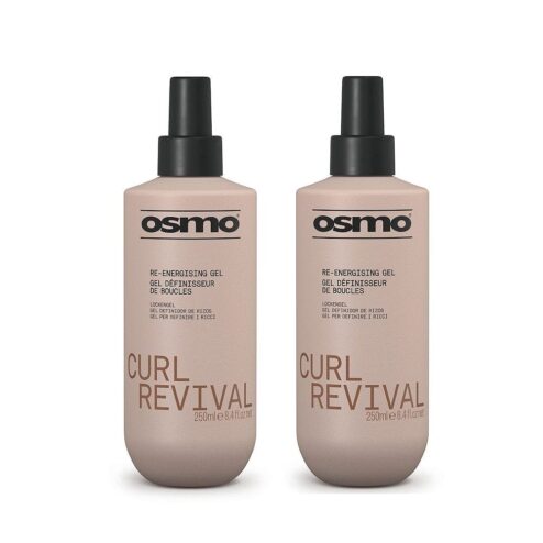 Osmo Curl Revival Re-Energising Gel 250ml. A salon energising gel formulated with green tea and soybean Oil, this water-based styler creates a protective, light, non-greasy cast around your curls, holding the style and shape with medium hold and long-lasting results.